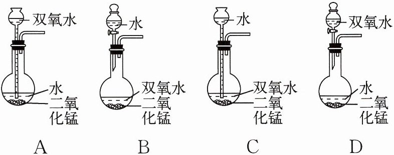 D 提示:实验室利用15%的双氧水制取氧气,反应速率较快,难以控制,收集困难,需要控制反应速率以得到平稳的气流。A装置过氧化氢浓度较大,B、C装置过氧化氢在未稀释之前已经剧烈反应,D装置通过分液漏斗控制过氧化氢溶液的加入速率,能够获得平稳的气流。