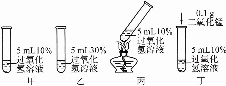 D.对比实验甲、丙和丁,探究二氧化锰和温度对过氧化氢分解速率影响的程度