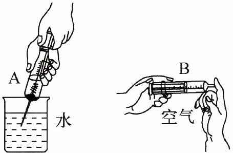 5.请用粒子的观点解释:如图所示,用两支医用注射器,分别吸入等体积的空气和水,顶住末端注射孔,将活塞慢慢推入,更容易推压的是______(填字母),理由:______。