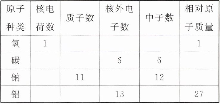|原子种类|核电荷数|质子数|核外电子数|中子数|相对原子质量|