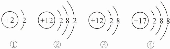 D 提示:①只有1个电子层,且该电子层上有2个电子,是相对稳定结构,②有3个电子层,最外层有2个电子,是不稳定结构,故两种元素化学性质不相似;具有相对稳定结构的有①③④;③中质子数大于核外电子数,属于阳离子,④中质子数小于核外电子数,属于阴离子;③是阳离子,是原子失去最外层2个电子形成的,故其原子的原子核外有3个电子层。
