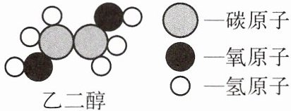 (乙二醇分子模型:两个C原子相连,每个C原子分别连接两个H原子和一个-OH,图例:灰球-碳原子,黑球-氧原子,白球-氢原子)