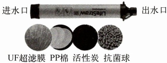 D 提示:生命吸管中的 UF 超滤膜和 PP 棉均可起到过滤的作用,除去难溶性杂质;生命吸管中的活性炭具有吸附性,可以吸附水中的色素和异味;生命吸管中的抗菌球可以起到消毒的作用,可除去细菌和病毒等;生命吸管不能起到蒸馏的作用。