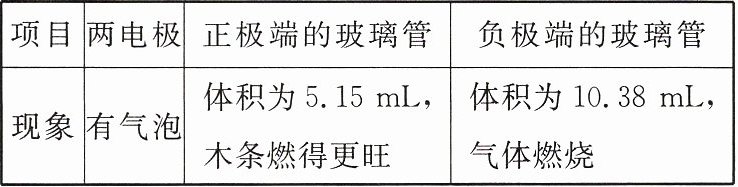 | 项目 | 两电极 | 正极端的玻璃管 | 负极端的玻璃管 |