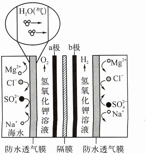B 提示:电解水时,生成的氢气和氧气的体积比为2:1,但质量比为1:8;根据示意图知,气态的水分子可通过防水透气膜;电解水时,正极产生氧气,负极产生氢气,a极产生氧气,则与电源的正极相连;由图知防水透气膜仅允许水分子透过,则得到的水为淡水。