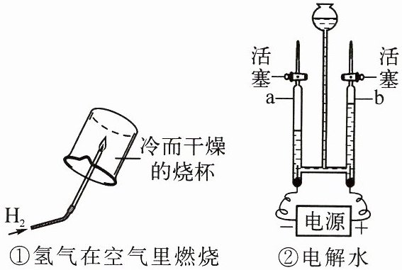 ①氢气在空气里燃烧 ②电解水