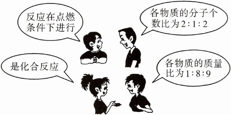 B 提示:根据质量守恒定律,化学反应前后,元素的种类不会发生变化,原子的数目也不会改变,参加反应的物质的总质量等于生成的物质的总质量;氢气和氧气的反应是在点燃条件下才可以发生。