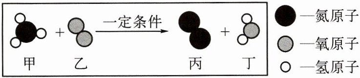 C 提示:由图可知,甲为NH₃、乙为O₂、丙为N₂、丁为H₂O,反应的化学方程式为4NH₃+3O₂ 一定条件2N₂+6H₂O。化学反应前后原子的种类和数目不变;化合物是指含有两种或两种以上元素的纯净物,则甲、丁属于化合物;由化学方程式可知,参加反应的甲和乙分子个数比为4:3;反应生成的丙和丁质量比为(14×2×2):[(1×2+16)×6]=14:27。