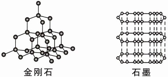 (1) 金刚石是立体网状的结构,石墨是层状的结构,图中结构的差异都是碳原子的排列方式不同所致。