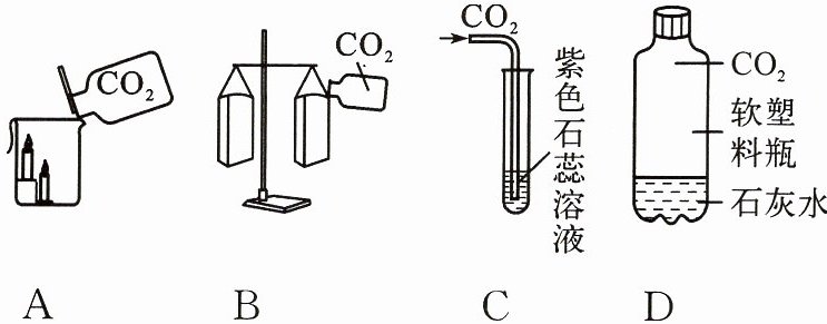 B 提示:A项既能证明其物理性质(密度比空气大),又能证明其化学性质(不能燃烧也不能支持燃烧);B项只能证明其物理性质(密度比空气大);C项只能证明其化学性质(能与水反应生成碳酸);D项只能证明其化学性质(能与氢氧化钙反应)。