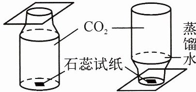 C 提示:玻璃片没有掉下,证明瓶内气压小于大气压,不能证明CO₂与水发生了反应;石蕊是一种色素,遇酸变成红色,注入水之前CO₂与石蕊试纸接触,但不能使石蕊试纸变红,倒置且振荡后CO₂与水充分接触,而此时石蕊试纸变红,说明CO₂与水反应产生了酸性物质。