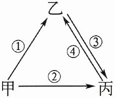 C 提示:根据题中信息可知乙物质为 CO,甲为固态单质又能转化为 CO,可推知甲为 C,丙与乙组成元素相同,可推知丙为 CO₂;①②④三个转化的反应中都有 C 这一反应物;③的转化可以是 CO 还原氧化铜或 CO 与氧气反应等;CO 和 CO₂的化学性质不同是因为其分子构成不同。