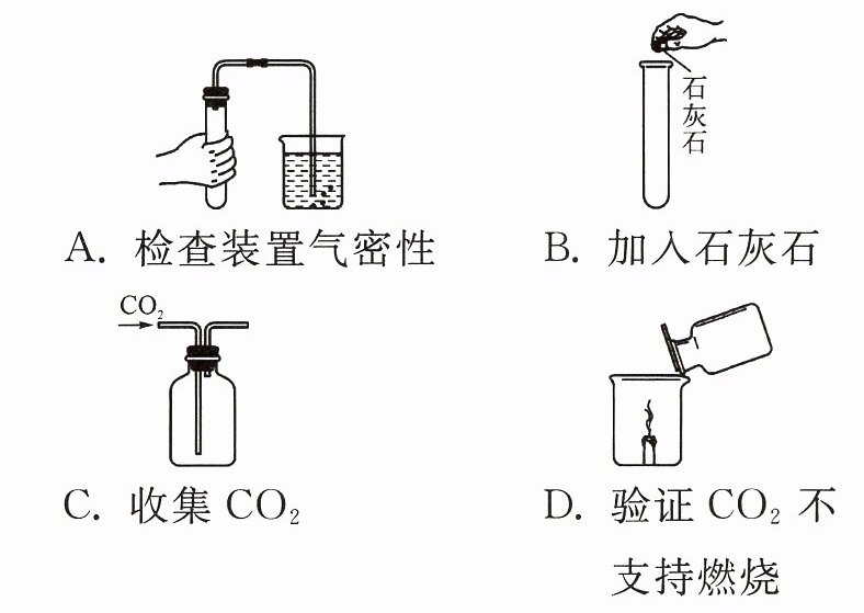 1. 制取、收集$ CO_2 $并验证相关性质,下列做法不正确的是( )