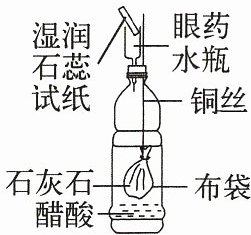 2. 某同学用塑料瓶设计了制取并检验$ CO_2 $性质的简易装置,如图所示,推动铜丝,把布袋浸入醋酸后有气泡产生。则下列叙述错误的是( )