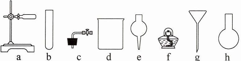 C 提示:根据题意要装配成一个简易的、能随开随用、随关随停的${CO2}$气体发生装置,就要保证固体与液体药品能随时接触与分开,而根据图中提供的仪器,利用 b、h 装置无法组装实现,又因为制取二氧化碳不需加热,故用不到 f;将固体药品放入 e 中,将液体药品放入 d 中,将 c 与 e 组合后放入 d 中即可以反应,取出即可以停止。