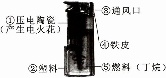 A 提示:对照燃烧的三个条件(可燃物、与氧气接触、温度达到着火点),燃料丁烷是可燃物,通风口提供充足的氧气,压电陶瓷能产生火花,使温度达到丁烷的着火点而燃烧。