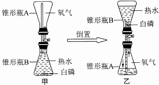 (3)若仅用该装置进行实验,验证空气中氧气的体积分数约为$\frac{1}{5}$,则白磷应足量,且应放在充满空气的锥形瓶A中,锥形瓶B中则应充满热水,并关闭活塞,待白磷充分燃烧并冷却到常温后,倒置成乙装置,由于白磷燃烧消耗了锥形瓶A中的氧气,因此由B瓶进入A瓶中的水的体积应为消耗的氧气的体积,由此可验证空气中氧气的体积分数约为$\frac{1}{5}$。