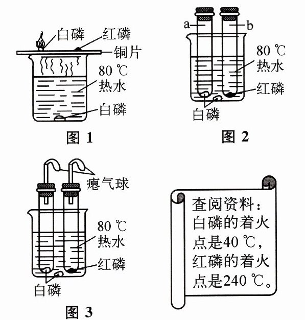 (1)温度没有达到着火点 铜片上的白磷燃烧,80℃热水中的白磷不能燃烧