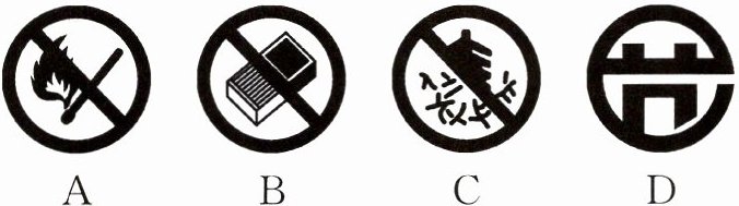 D 提示:A 图标为禁止烟火标志,属于消防安全标志;B 图标为禁止携带火种标志,属于消防安全标志;C 图标为禁止燃放鞭炮标志,属于消防安全标志;D 图标为中国节能标志,不属于消防安全标志。