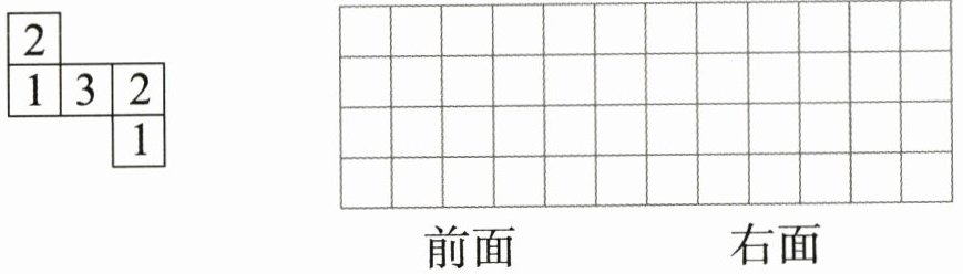 1. 由一些小正方体搭成一个物体,如图是从上面看到的这个物体的平面图,方格中的数字表示该位置上小正方体的个数。请在方格纸中分别画出从这个物体的前面和右面看到的图形。(4 分)