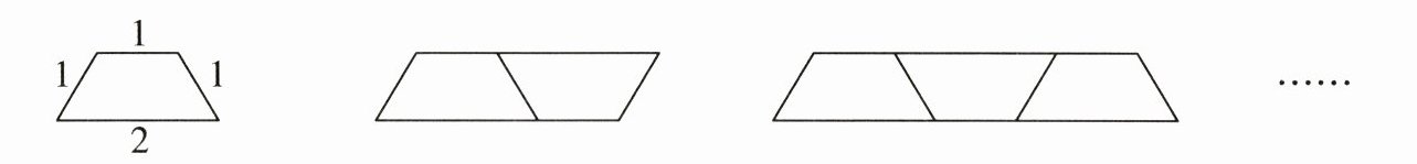 2. 下面各图都是由完全相同的小梯形拼成的(单位:厘米),先观察,再填一填。(4 分)