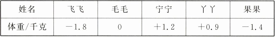 |体重/千克|-1.8|0|+1.2|+0.9|-1.4|