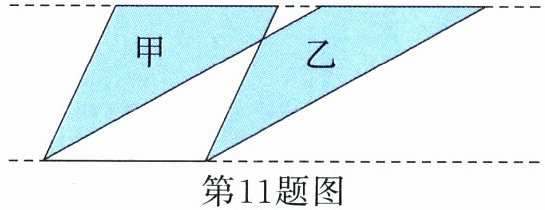11. 如图,平行线间的两个涂色部分的面积相比,甲( )乙(填“>”“<”或“=”),你的理由是( )。