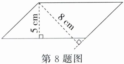 8. 如图,一个平行四边形的两条不同的高分别是 5 厘米和 8 厘米,量得其中一条底边长 7 厘米,这个平行四边形的面积是( )平方厘米。(2 分)