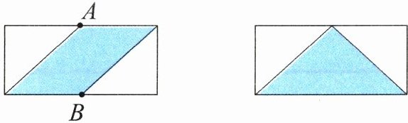 4. 如图,A、B 分别是左边长方形上、下两条边的中点,比较下面两个图形中涂色部分的面积,( )。