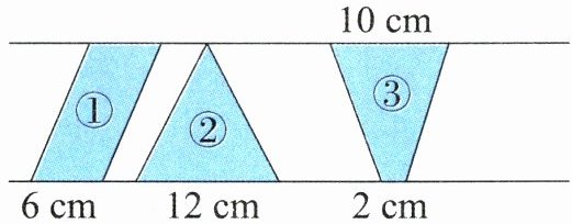 5. 如图,①、②、③这三个图形的面积相比,( )。