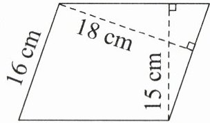 12. 王老师用木条做了一个长方形木框,相邻两条边的长度分别是 18 厘米和 12 厘米。把它拉成一个平行四边形木框后,面积减少了 36 平方厘米,这个平行四边形木框的周长是( )厘米,面积是( )平方厘米。