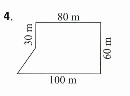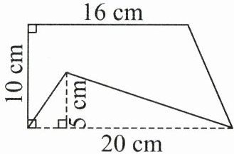 1.16×18=288(平方厘米) 2.(6+8)×9÷2=63(平方分米) 3.(16+20)×10÷2−20×5÷2=130(平方厘米) 4.30×80+(80+100)×(60−30)÷2=5100(平方米)