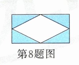 8. 如图,一个长方形的长为 8 分米,宽为 4 分米,把四条边的中点顺次连接起来,涂色部分的面积是( )平方分米。
