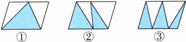 1. 如图,有三个完全一样的平行四边形,图中涂色部分的面积相比,( )。
