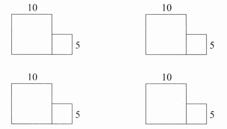 2. 同学们!看到算式$ S= (10+5)×5÷2 $,你想到了哪些图形?请在下面边长分别是 10 厘米和 5 厘米的两个正方形的组合图形里面画出来。(单位:厘米)(4 分)