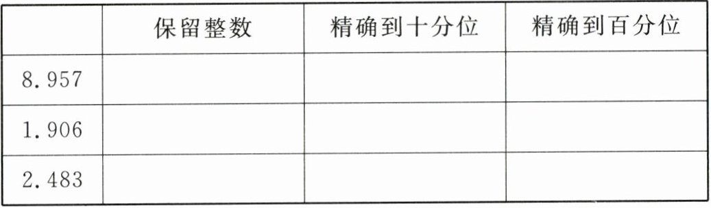 | | 保留整数 | 精确到十分位 | 精确到百分位 |