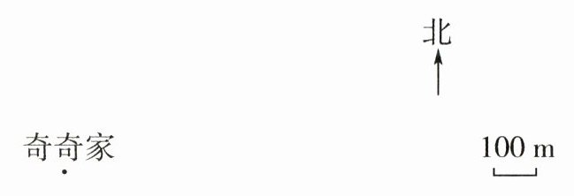2. 奇奇从家向东走了500米(记作+500米),到达公园;如果他从家走-200米正好到达书店,那么请你画出公园和书店两地的位置。(4分)