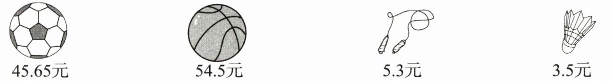3. 徐老师为了鼓励学生参加大课间活动,从下面四件体育用品中购买了两件。徐老师付给营业员 100 元,找回了 40.2 元。