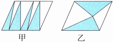 2. 如图,如果甲、乙两个平行四边形的面积相等,那么甲、乙两个图形中涂色部分面积的大小关系是( )。