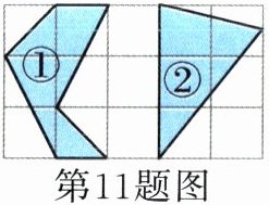 11. 如图,①号涂色部分的面积( )②号涂色部分的面积。(填“大于”“小于”或“等于”)