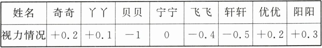 | 视力情况 | +0.2 | +0.1 | -1 | 0 | -0.4 | -0.5 | +0.2 | +0.3 |