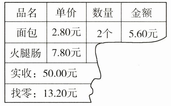 | 面包 | 2.80元 | 2个 | 5.60元 |