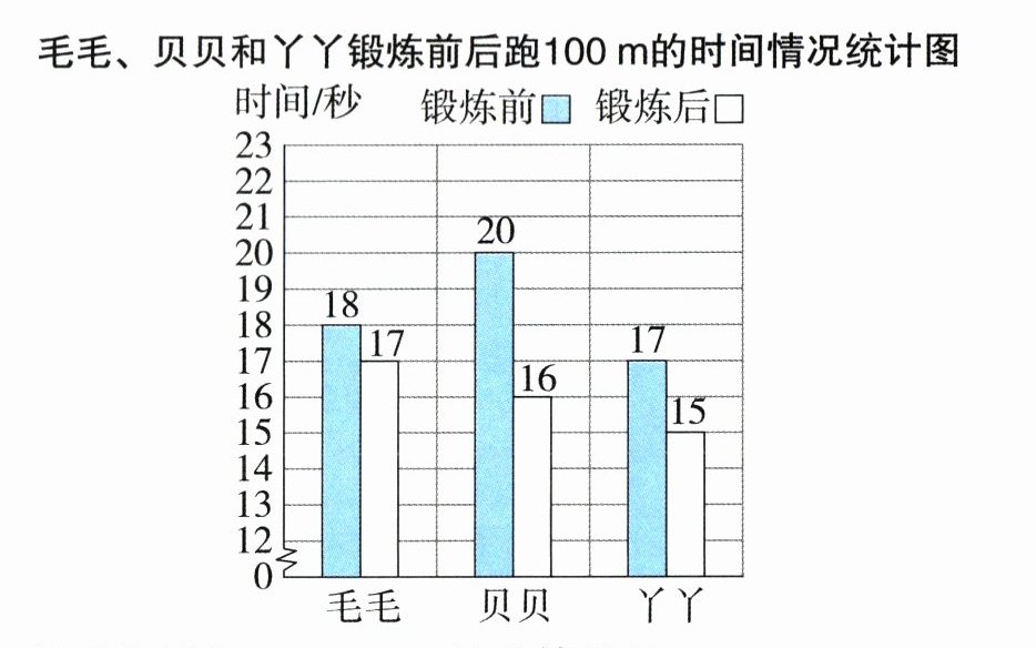 毛毛、贝贝和丫丫锻炼前后跑100m的时间情况统计图