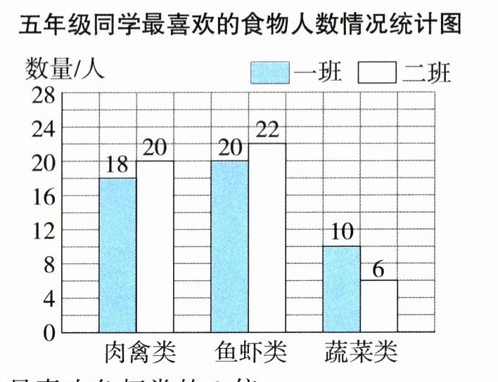 (1)最喜欢吃( )的人数最多,有( )人;最喜欢吃( )的人数最少,有( )人。