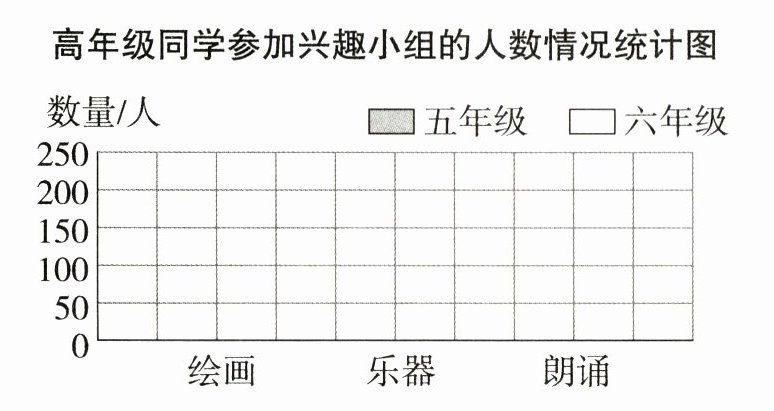 五年级:绘画 135 人,乐器 125 人,朗诵 200 人。