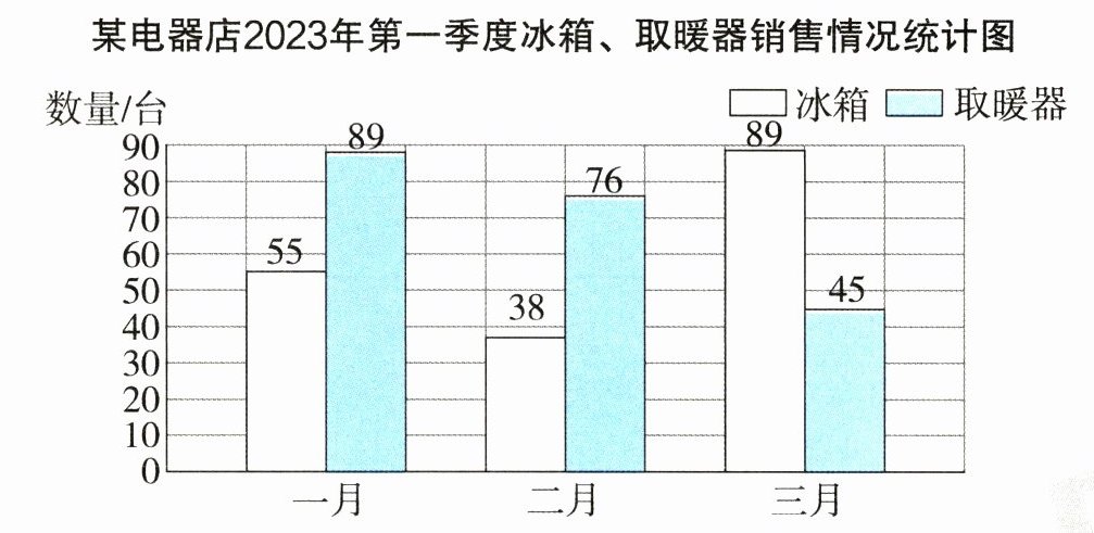 某电器店2023年第一季度冰箱、取暖器销售情况统计图