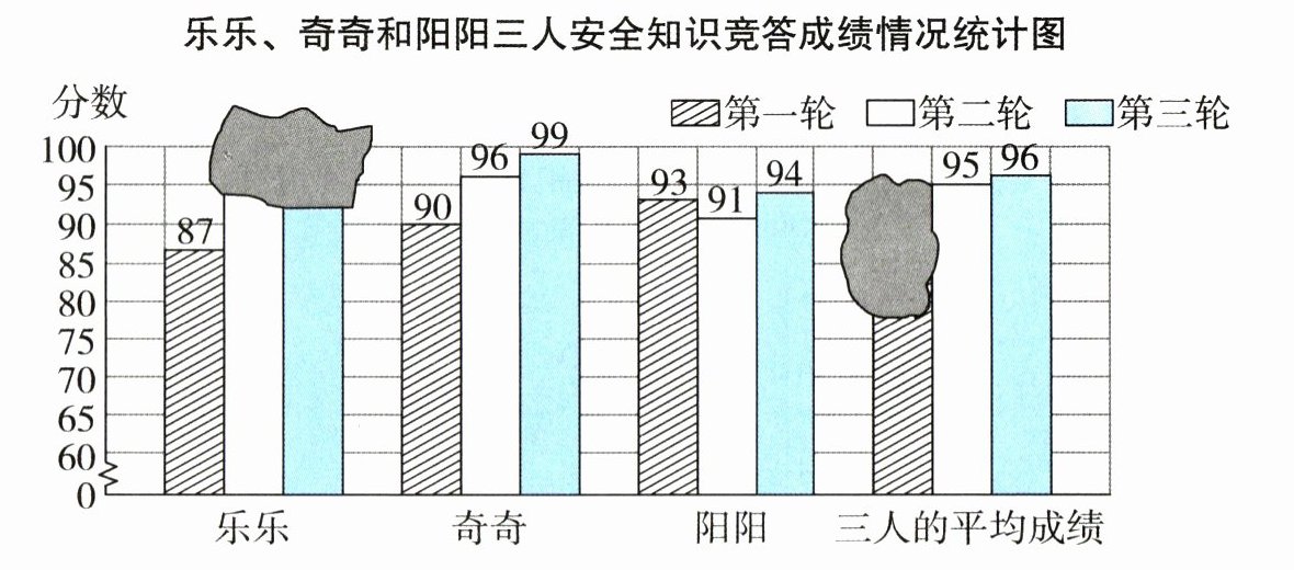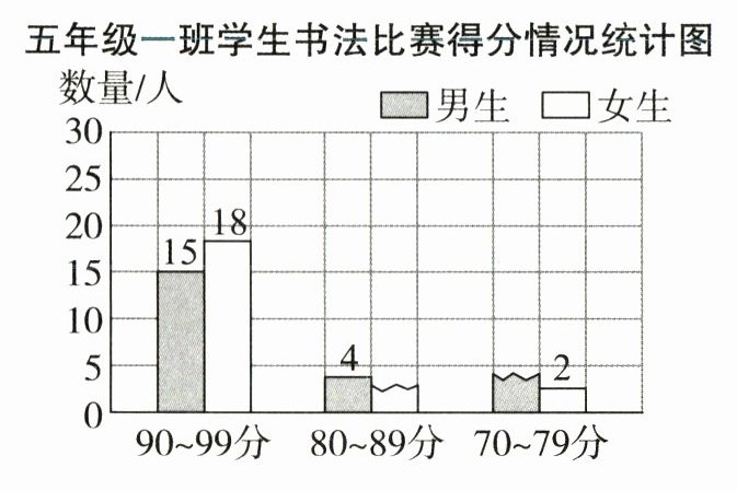 3. 下面是某校五年级一班学生书法比赛得分情况统计图。