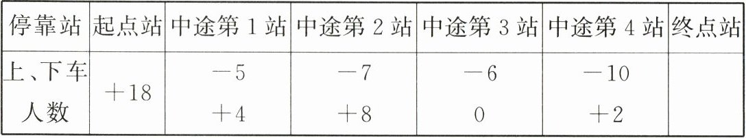 |上、下车人数|+18|-5 +4|-7 +8|-6 0|-10 +2| |