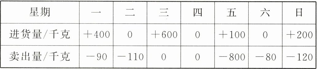2. 下面是某粮店一星期的大米进货量与卖出量统计表(进货为正,卖出为负)。