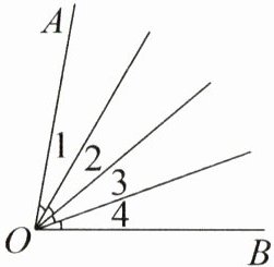 5. 如图,∠1= ∠2= ∠3= ∠4,如果图中所有角的度数和是400°,那么∠AOB是多少度?(4分)